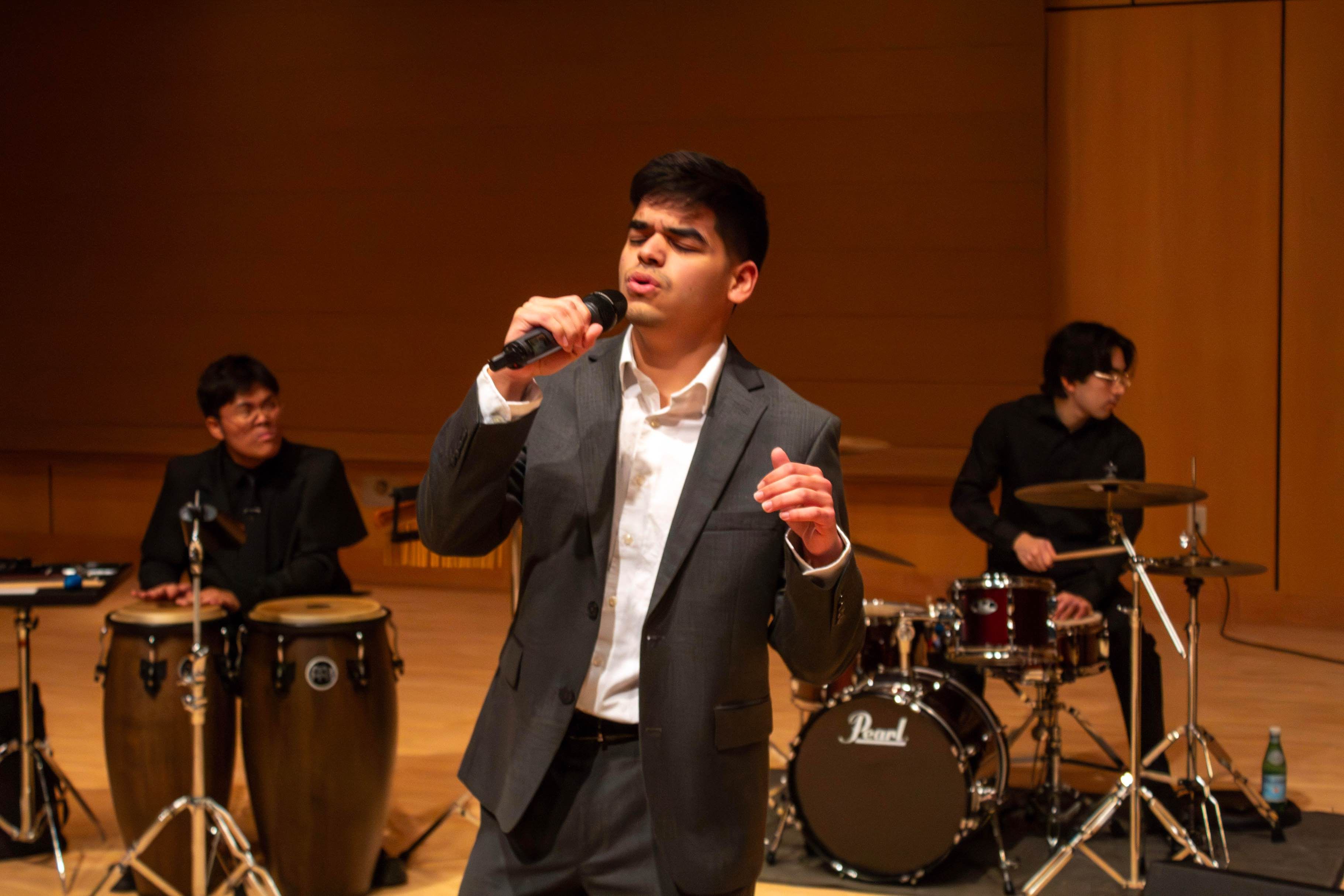 Cesar singing at a show